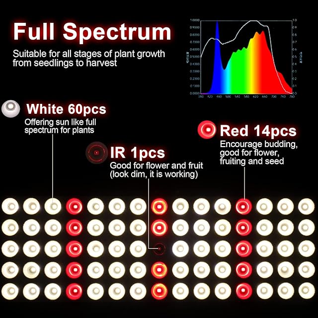 【フルスペクトル】この植物成長ライトは、室内植物のために特別に設計されています。75個の高品質LEDビーズ(ホワイト、レッド、IR)を丁寧に組み込んでおり、植物に自然な太陽光に似た光を提供します。植物の成長の全段階に適しています。50,000時間以上の寿命を持ち、この成長ランプは長持ちするように設計されています。