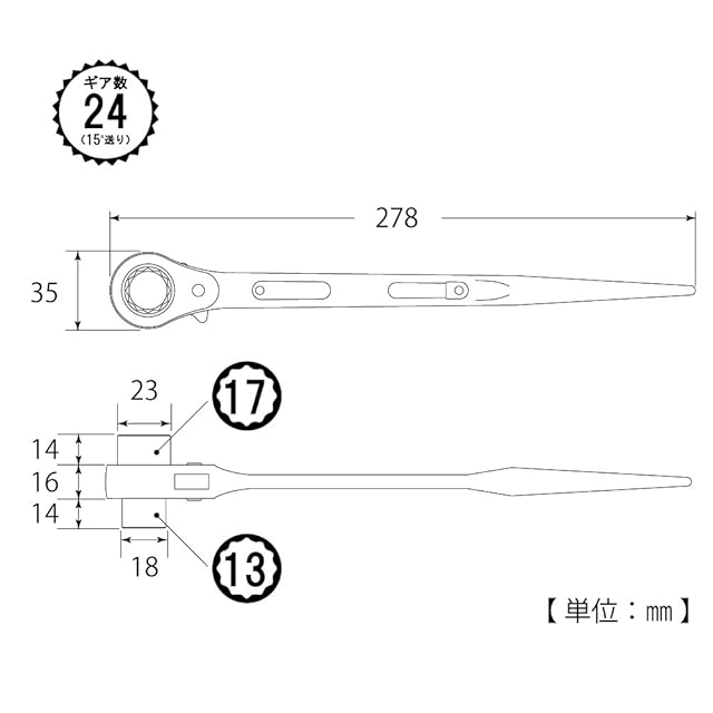 トップ(TOP) 両口ラチェットレンチ シノ付 RM-13×17
