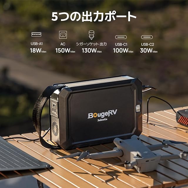 商品名:BougeRV ポータブル電源 小型 軽量 240Wh リン酸鉄 ポータブルバッテリー ポタ電 2.85Kg コンパクト 持ち運び便利 純正弦波 100WUSB-C口 パススルー 長寿命 充放電サイクル3500回以上 5つ出力ポート USB/AC/シガーソケット 急速充電 ワーケーション バイクキャンプ 車中泊 アウトドア 停電対策 防災グッズ 非常用電源 JuiceGo