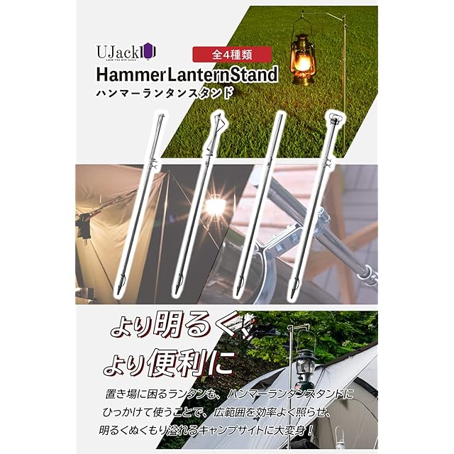 UJack(ユージャック) ランタンスタンド ハンマーランタンスタンド ステンレス製 打ち込み式 自立型 収納ケース付き (タイプ:シングル)