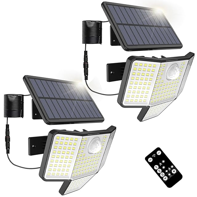 【新世代センサーライト・明るさ調節】本製品は、今までの常識を覆し、明るさ調節可能、四面に同時照射可能、より高輝度照明を継続していただくために開発された、最新世代のソーラーライトです。リモコンのボタンを押すだけで明るさが三段階調整可能で、利便性が高いです。弊店の最新版だけでなく、市場ではLEDソーラーライトシリーズで機能と性能が最新分離型ledセンサーライトです。