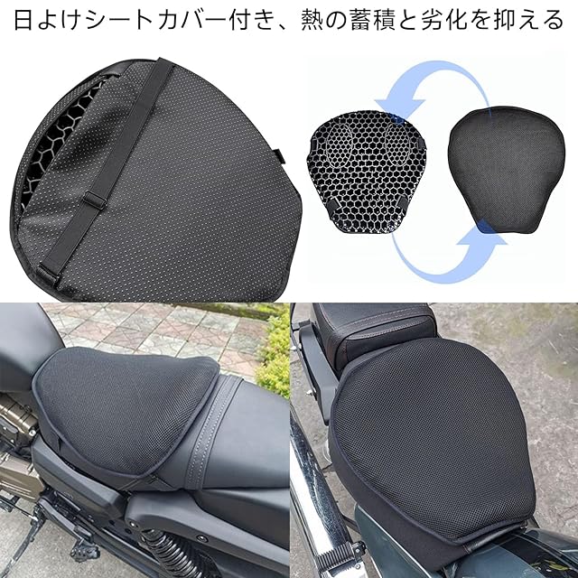 バイクシートクッション ゲルクッション(前席用-M) 3Dメッシュシート 衝撃吸収 人間工学に基づいた ムレにくい 快適 取り付け簡単、断熱、防湿性と通気性 シートカバー バイク シートカバー (ブラック)