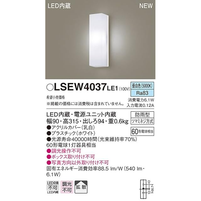 商品名:パナソニック(Panasonic) LED ポーチライト 壁直付型 40形 昼白色 LSEW4037LE1