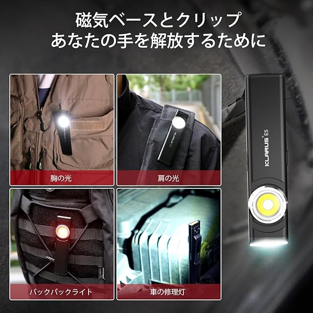 商品名:KLARUS E5 ミニライト小型led充電式懐中電灯、維持、キャンプ、ハイキング、緊急事態のために適した磁気基盤およびバックル クリップが付いている明るく 470 ルンメー 小さく平らなミニライト