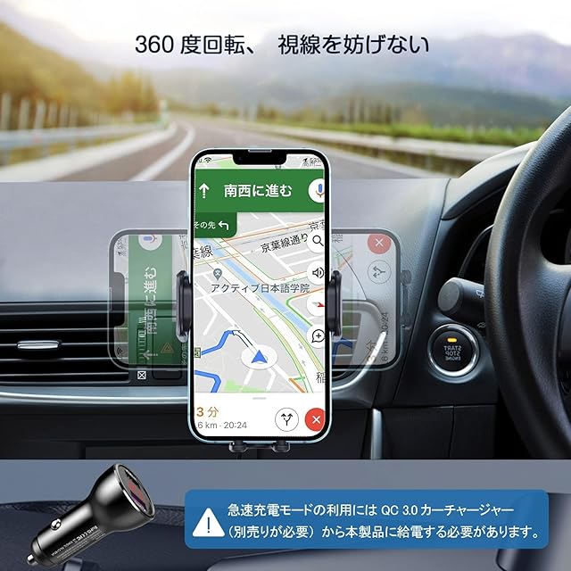 【360度回転車載ホルダー&最適な視野角を得る】車載ワイヤレス充電器は360度回転できるボールジョイントを採用し、横でも縦でもスマホを自由に操作できます。視線を妨げないで、スマホを最適な位置と視野角に調整し、安全に運転できます!スマホを充電しながら車載ホルダーとしても使えるため、GPSナビゲーション、天気予報、音楽、交通情報など使用する際はバッテリーの残量を気にせず快適にドライブ出来ます。また、ケースを付けたスマホは厚さが6mm以下、横幅が9.5cm以下なら、順調に充電できます。