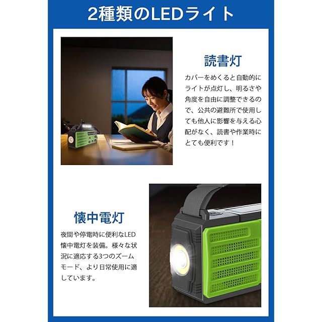 【買う価値がある理由 】強力な信号受信アンテナ、8000mAhの大容量バッテリー、3モードの超高輝度懐中電灯&6LED読書ランプ、4電源、SOSアラートが装備されています。また、バッテリーインジケーター、3.5mmヘッドフォンジャックなどの新機能を追加する研究を行っています。