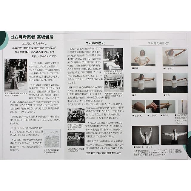◆新ゴム弓</br> 日本で最初にゴム弓を製造した 「高坂ゴム店」 基礎練習具として</br> 広く多くの方につかわれているゴム弓となります。 </br> ゴム弓は、筋力トレーニング用の道具ではなく、射型を覚えるための基礎練習道具です。 </br> ゴムを短くしすぎるなどの行為は、ゴムの劣化を早め、破損や怪我の元になりますので、</br>適度な長さにてご使用ください。