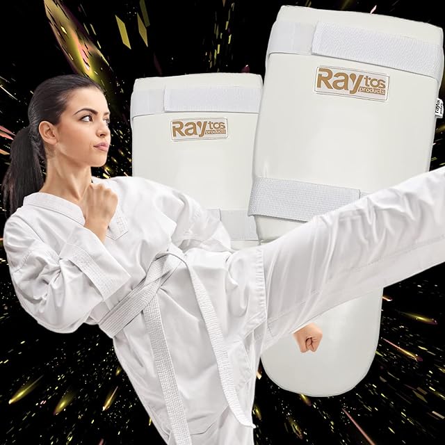 Raytos ベーシックレッグガード レガース キックボクシング 足サポーター キックボクシング レッグガード すね当て 3cm厚手インナー 衝撃吸収 格闘技 空手 防具 プロテクター (ホワイト)