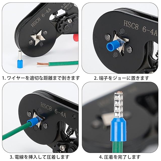【幅広い用途】圧着ペンチは4方向から同時に圧縮でき、圧着面は鋸歯状になっています。電気部品の取り付けや配線に使用できます。作業場、自動車電気技師、整備士、自動車および家庭用電気のメンテナンス作業に適した圧着工具セットです。