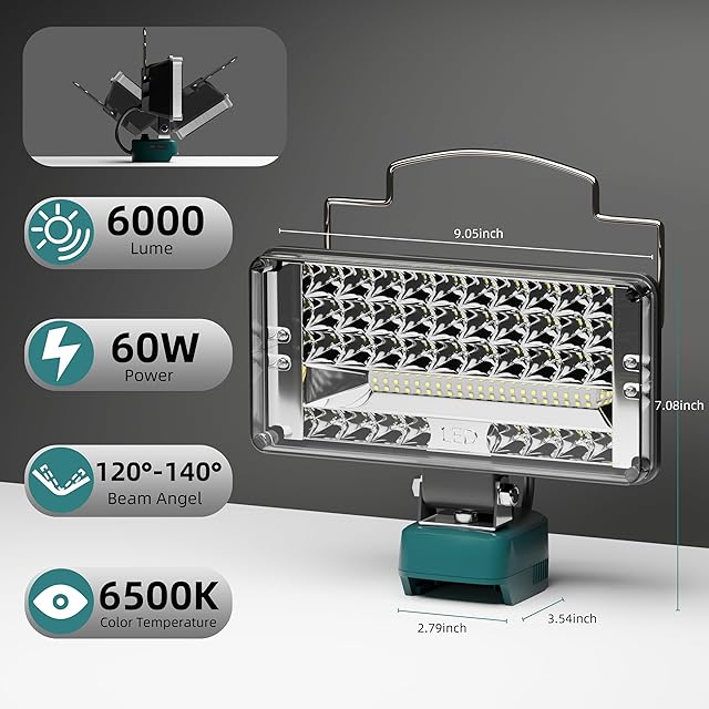 作業灯 ledワークライト投光器充電式マキタ18 Vバッテリー互換ガレージライト ライト 照明 屋外投光器集魚灯ワークライトマキタ互換電動工具USB&Type-C充電携帯型工事現場 (7")