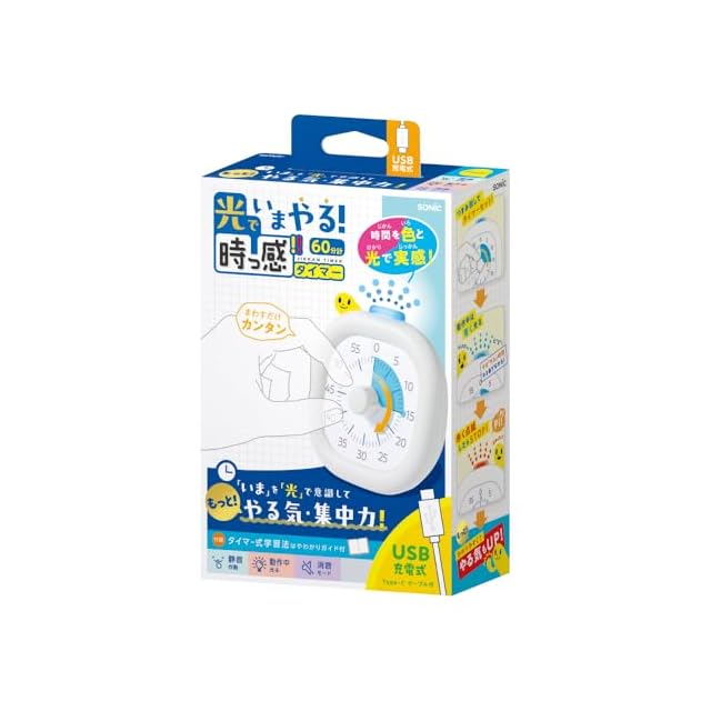 ソニック タイマー トキサポ 光でいまやる! 時っ感タイマー USB充電式 ホワイト LV-7826-W