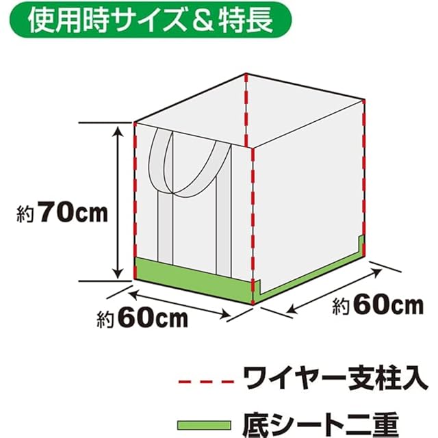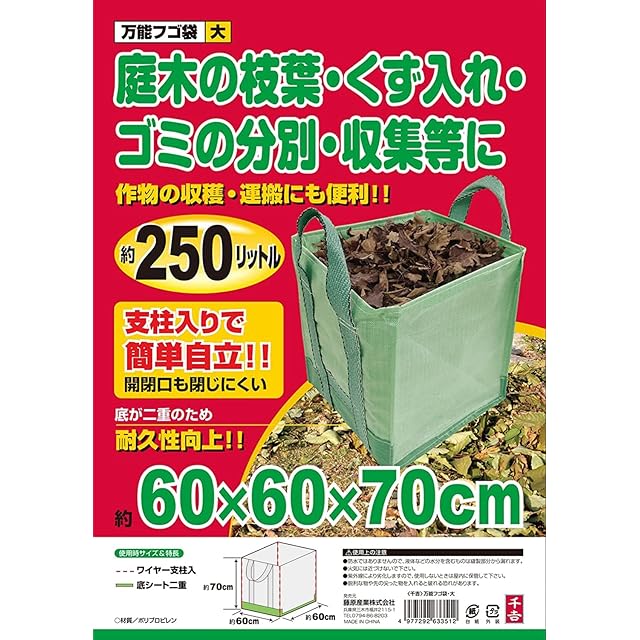 商品名:千吉 自立式 万能フゴ袋 大 60×60×70cm 約250リットル 支柱入りで簡単自立 底シート二重で耐久性向上