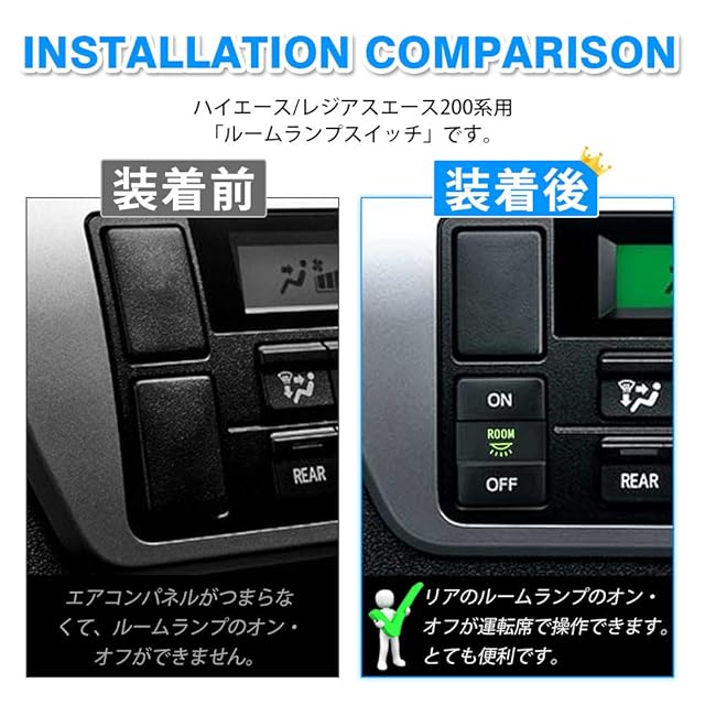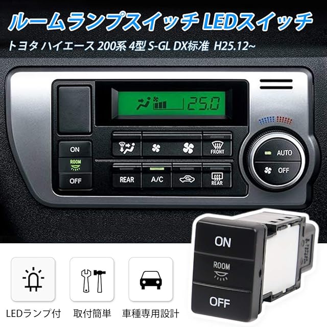Cartist ハイエース 200系 に適用 ルームランプスイッチ LEDスイッチ 純正風スイッチ HIACE 200 4型 S-GL DX标准 H25.12~ ON/OFF スイッチ LEDランプ付き イルミネーション 純正交換 カスタムパーツ インテリア 内装パーツ 取付簡単