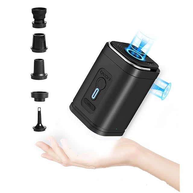 この電動エアーポンプは、空気入れ・空気抜き両方に対応し、4KPaの強力な空気圧で素早く膨らませ、圧縮袋の空気を抜いてスペースを節約できます。<br> 5種類のノズルを付属し、エアベッドや浮き輪、BBQの送風など多用途に活躍します。<br> 120gの超軽量設計で、手のひらサイズなので、持ち運びも簡単で、子供でも操作できます。<br> 3段階調整可能なLEDライトで、夜間キャンプなどで便利に使用できます。<br> リチウムイオンバッテリー内蔵、Type-Cポートで充電可能。外出先でも使いやすく、安全機能も搭載しています。<br 商品説明:<br>CITER 充電方法: Type-C充電ケーブルを使用して、ポンプ本体を充電してください。充電完了後、最大性能で使用できます。<br> ノズルの取り付け: 使用するノズルを選び、ポンプのノズル口にしっかりと取り付けてください。<br> 空気注入: 電源ボタンを押してポンプを起動し、ノズルを対象物(エアベッドや浮き輪など)にセットして、空気を注入します。<br> 空気排出: 排気モードに切り替えて、圧縮袋やその他のアイテムから空気を素早く抜きます。<br> LEDライト機能: ライトボタンを押して、3段階の明るさを調整できます。長押しでSOS信号の点滅モードに切り替わります。<br> 使用後のお手入れ: 使用後は電源を切り、乾燥した場所に保管してください。長時間の連続使用は避け、過熱を防ぎましょう。<br>