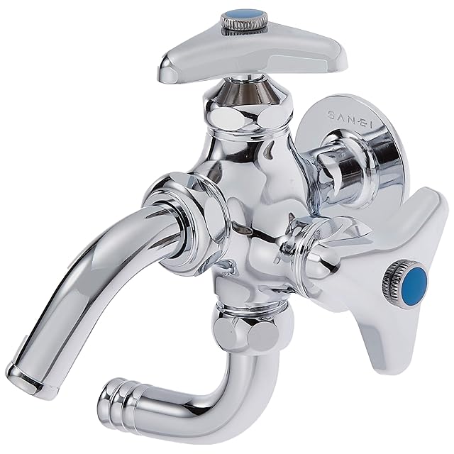 商品名:SANEI(サンエイ) 散水用 万能二口横水栓 呼び13 散水ホース接続 吐水パイプ回転 水道 蛇口 二股 二口水栓 JF12A-13