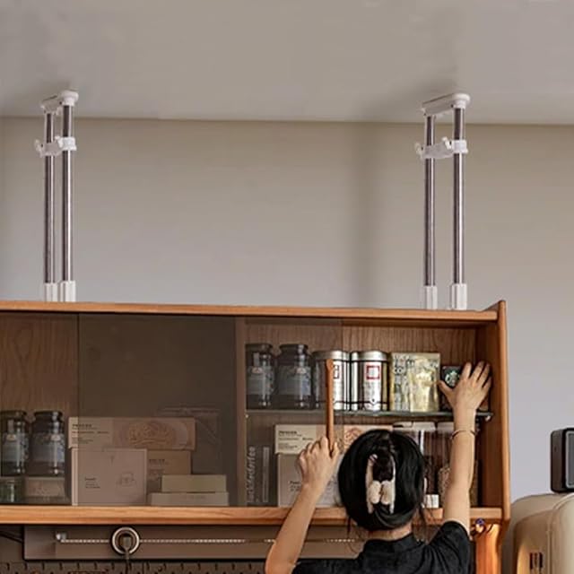 ダブルH型構造とジャッキ方式で、家具と天井をしっかりと固定します。5㎝ブロックがあり、様々な幅範囲に対応できます。