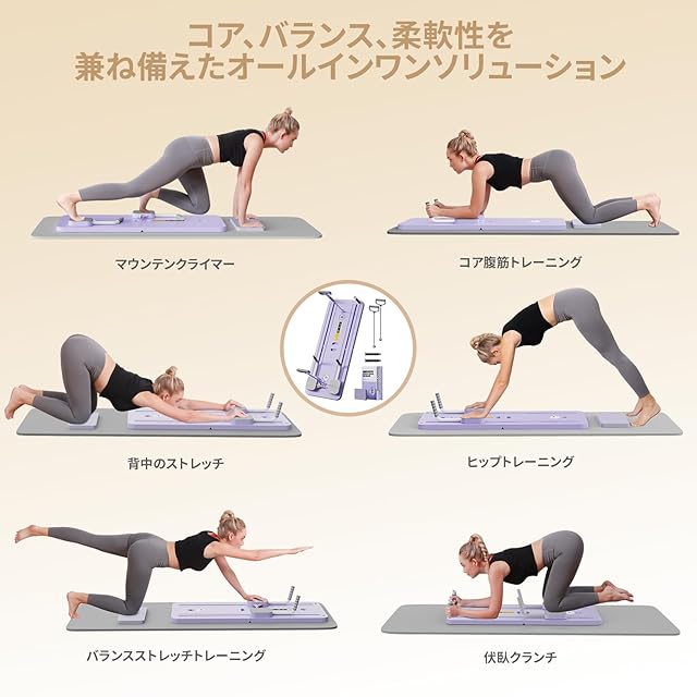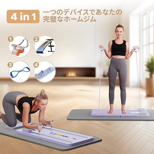 商品名:UJR ホームジム用自動リバウンド付き折りたたみ式腹筋マシン - 膝パッド付きコア&腹筋筋力トレーニング器具 - 腹筋コアトレーナー&プッシュアップボード (淡い紫色)