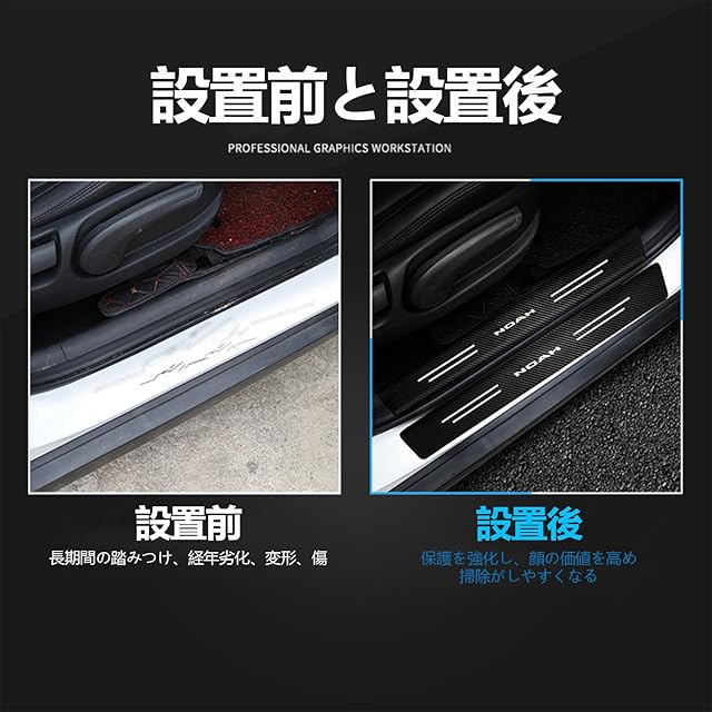 NOAHノア新型 サイドステップガード スカッフプレート 汎用 高級内装パーツ 金箔仕上げ 金メッキ技術 強力粘着テープ付き 防水・防汚・防傷 簡単取り付け 4点セット
