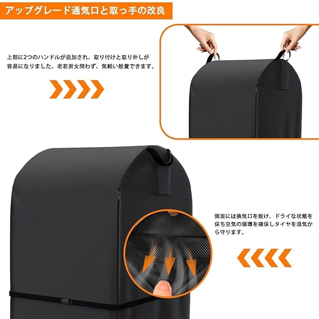 商品名:SDAVO タイヤラックカバー 屋外 防水 ダブルファスナー 420D 厚手 8本収納 タイヤ保管カバー 便利なハンドル 車用収納カバー 紫外線防止 防風 防雨 劣化・汚れ防止 耐久 防風ベルトと収納袋付き ( 長さ110×幅75×高さ145cm, ブラック 420D厚手)