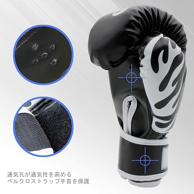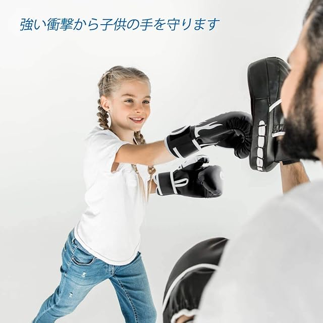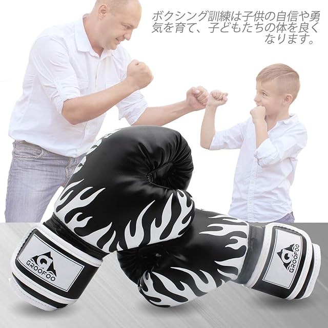 商品名:ボクシング グローブ 子供用 GROOFOO パンチ スパーリング 子供用 高級PUレザー 軽量 格闘技 打撃 空手 親子 トレーニング ストレス解消 ボクサー 特訓 通気性 (ブラック6oz)