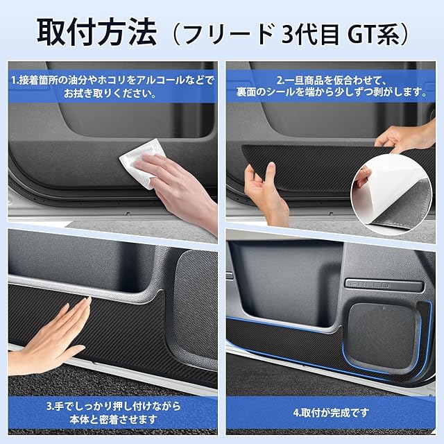 商品名:Cartist 新型フリード エアー エアーEX クロスター ドアキックガード ドアトリムガード ドアプロテクター ドア保護 FREED AIR AIREX CROSSTAR GT1/2/3/4/5/6/7/8 2024年6月28日〜現行 3代目 GT系 車種専用設計 ドアトリムカバー PVCレザー 汚れ防止 キズ防止 蹴り防止 内装カスタムパーツ アクセサリー 2Pセット 一列目用 カーボン調