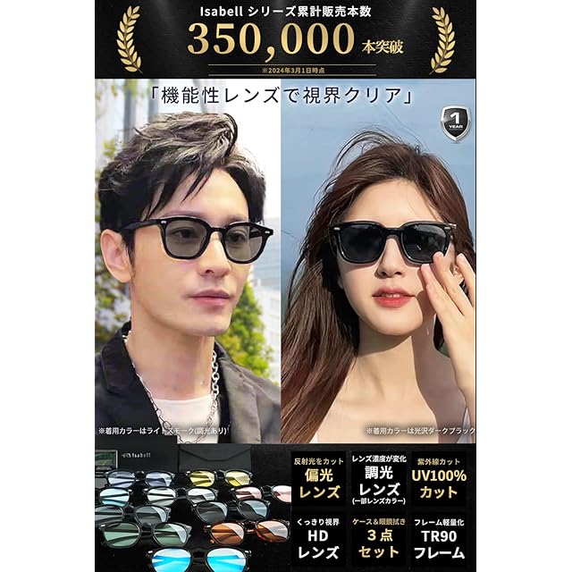 商品名:[Isabell] サングラス メンズ 偏光サングラス 運転 レディース 調光 釣り スポーツ 変色 カラーレンズ 軽量 UV99%カット ケース付属 (ライトスモーク(調光))