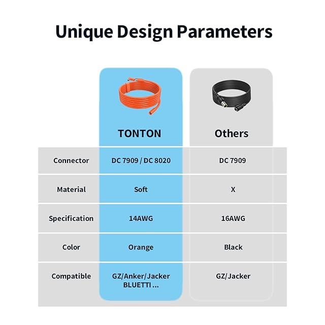 Tonton 3m DC延長ケーブル 8mmDC7909 ソーラーパネル接続用 ポータブル電源 充電バッテリー ソーラーパネル用延長コード DC8020プラグ付き14AWG