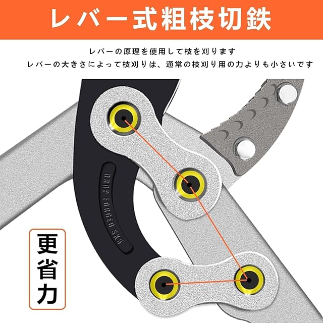 【高品質のスチール製】高炭素SK5鋼で作られた高品質のブレードで、折れにくいです。ブレードは錆びにくいテフロン防錆コーティングを施し、通常のスプリングよりも長寿命で高品質同心スプリングを採用しています。 使用の安全性、人間工学および環境へのやさしさに関する基準のすべてに適合した林業用品です。