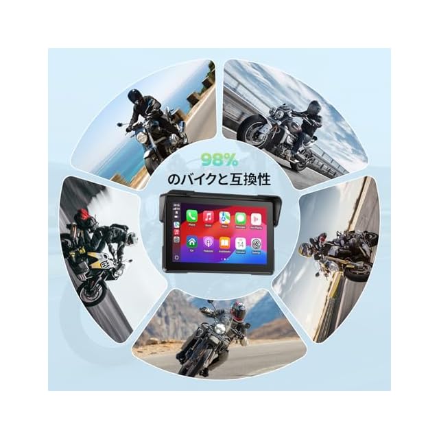 商品名:LAMTTO 7インチ バイク用ディスプレイオーディオ バイク ナビ バイク スマートモニター ワイヤレスCarPlay & Android Auto対応 IP67防水防塵 Bluetooth 5.0 音楽再生/通話/ナビゲーション対応 分割画面 昼夜モード切替 日本語説明書付属 技適取得済み