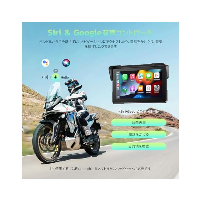 【音声コントロール】両手を解放し、集中力を保ちたいですか?音声操作があれば、ナビゲーション、音量調整、電話の受信などを簡単な音声コマンドで操作できます。高速走行中や渋滞中でも、簡単かつ安全に操作が可能です。(ヒント:この機能を使用するには、事前にスマホのSiriとGoogle Assistantを有効にする必要があります。)