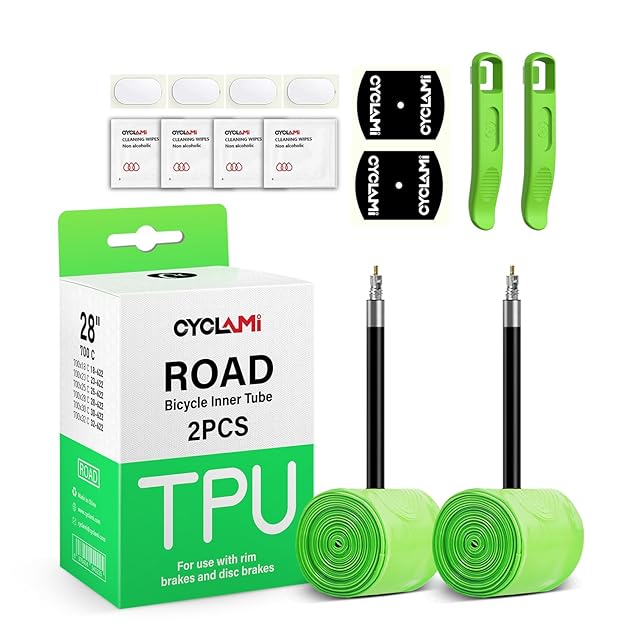 2本セット CYCLAMI 30g 超軽量ロードバイクTPUインナーチューブ700Cバイクタイヤ28インチ700×18 23 25 28 30 32c バルブ長 フランス 65mm 日本語取扱説明書 (インナー・パッチ4枚とインナー・プライバー2本が付属)