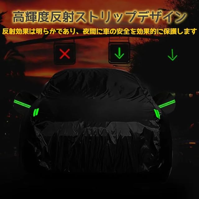 ⭐【反射ストリップ付き】車体カバーのサイドミラーと前後左右に反射ストリップが付いており、夜間の警告として使用できます。夜間にはどこに車があるか分かりやすくなります。特に吹雪いているときは、視認性が上がって衝突防止になることができます。