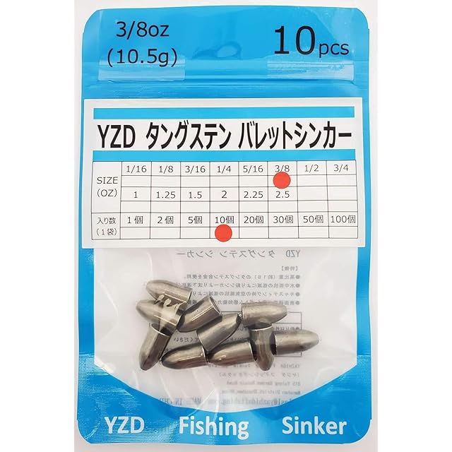 YZD タングステン バレットシンカー TG 10.5g 3/8oz 【10個】