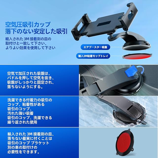 【大人気の最新改良型ipadタブレット車載ホルダー 】Elnicec 会社は「より早く、より安全な運転を体験しよう」という理念を持ちながら、心から認められる製品を作り出し続けています。お客様の意見を聞き、従来のダッシュボード車載ホルダーとは異なり、ウォーターフォール型の車載ホルダーはカーブしており、道路の遮るもののない運転ビューと、ipadの完璧な視野角度を提供します。快適で安全な視界を確保することが可能で、安心した運転をサポートします。悪路でも常にデバイスを安定させます。 【超強力 粘着ゲル + 真空 吸盤 で+ワンタッチロック】この車載ホルダーは最新の真空吸着技術を採用し、吸着力が強くて安定性に優れています。粘着パッドを使用すると、吸盤式車載ホルダーは吸盤パッドに取り付けて使用すると、iPadホルダーの安定性が大幅に向上し.ロック後は吸盤に空気が入るのをしっかり防止し、吸盤が緩んだり脱落したりするのを効果的に防止することができます。車載iPadホルダーが接触する表面には滑り止めシリコンパッドが付いており、iPadをしっかりと保護し、使用時の揺れを防げ、揺れても外れることはないです。 【自由に角度調整】 タブレットホルダー 360度回転できるボールジョイントと回転可能の伸縮アームで、もっと幅広い可動域を届けます。 横でも縦でもスマホを自由に操作できます、両方使える動画鑑賞やナビゲートも見やすい。上下に回転させ、最適な視野角に調整することが可能です。 また、車内ではスマホやタブレットを縦、横、斜めに置くことができます。 工具を使わず、片手で簡単に調整できます。超広範囲の可動範囲で、すべての車種に応じできます。 【取り付けが簡単】このipad車載吸盤ホルダーは、フロントガラスや滑らかな面に、他の工具を使わずに簡単に固定できます。粘着性のある強力なゲル吸盤により、細かい凹凸のあるダッシュボードにも直接取り付けられます。吸盤の底部の保護シートをはがして、車のフラットブラケットを取り付ける必要がある場所に合わせてからロックレバーを押すと、吸盤がダッシュボードにしっかりと固定される強力な吸引力を得ることができます。粘着力が弱まったら、水で洗って放置して乾燥させるだけで粘着力が回復することができます。 【ユニバーサル互換性】5.5インチのiPhone、スマホ/iPad、6-11インチのタブレットなど多くの機種に対応しています。142-275mm 全機種対応.使用中は、電話機の背面にあるカメラをブロックしたり、充電ポートやヘッドフォンジャックに影響を与えたりすることはありません。また、スマホに充電しながら車載ホルダーとしても使えるので、Google地図などの地図アプリケーションをナビゲーションとして使う時には電池の残量を心配せずに快適に運転できます。