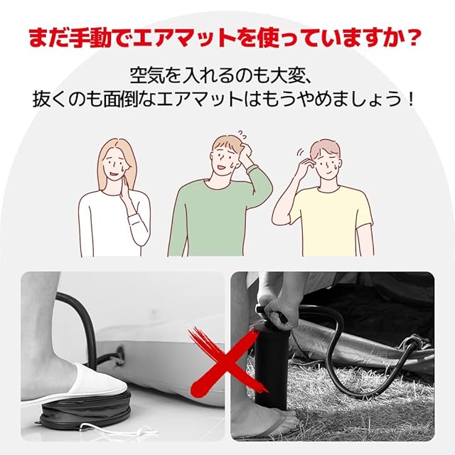 ☀セット内容: 電動エアーベッド本体、ノズル、電動ポンプ、Type-c充電ケーブル、収納袋、日本語説明書 電動ポンプ :お客様のお自宅のエアー製品でも空気入り/空気抜けることができます。