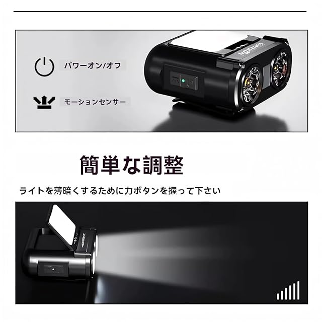 商品名:【WARSUN MD9】充電式ヘッドライト 800ルーメン COBパネル 90°角度調整可 揮手センサー 5モード 釣り・自転車・キャンプ・登山・緊急用