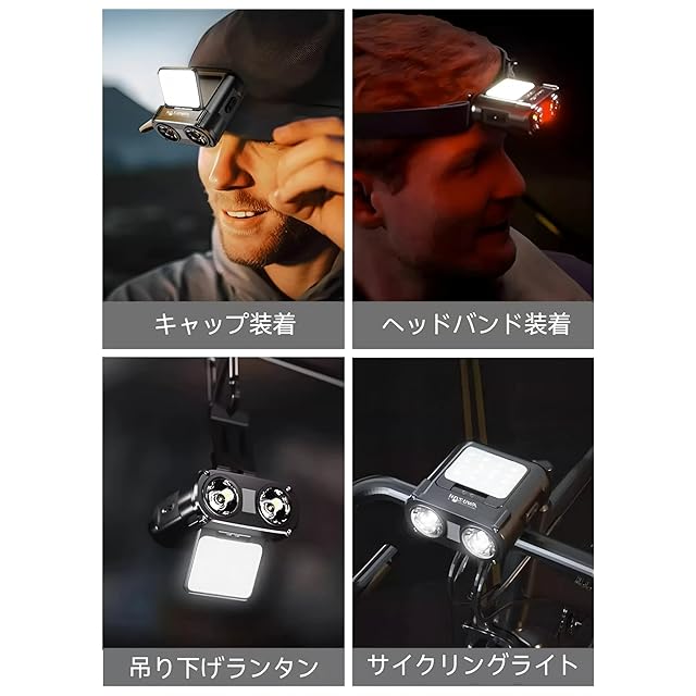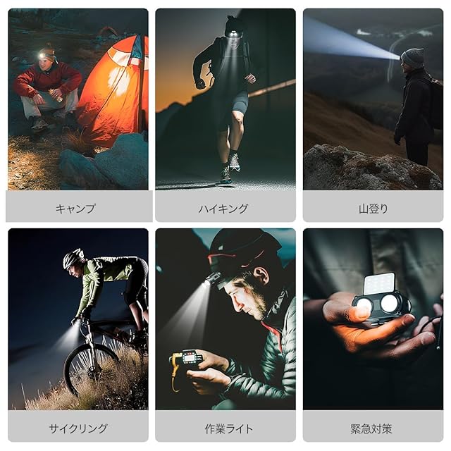 【センサー機能】ノータッチセンサーを内蔵し、センサースイッチを押すと、センサーモードに入り、ヘッドライトの前に手を振れば(10cm距離以内)点灯/消灯の切替ができます。暗い場合における釣り、庭のメンテナンス、自動車修理などでも便利です。手が汚れたままでヘッドライトに触れる必要がありません。