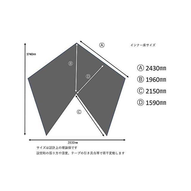 ■サイズ(約):インナーテント/398×364× (H)280cm ■重量(約):インナーテント/3.1kg グランドシート/1.04kg