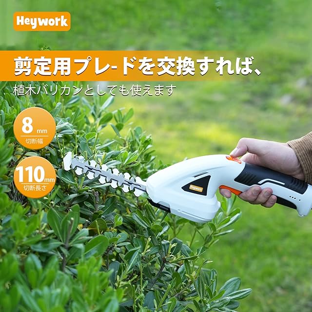 Heywork 一台二役 3.6V充電式 コードレス芝生バリカン 生垣バリカン 芝刈り機 ガーデン 植木 剪定,刈込幅80MM,簡単組立,バッテリー・データライン・芝刈りブレード付き