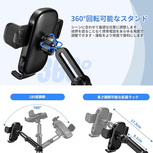 「高度な機械アーム」 TOWYSORの最新モデルのスマホホルダーはロボットアームをアップグレードして、より柔軟性(2つの調節可能な位置)とより長い距離(29cmまで)にして、完璧な視野角と高さを調整して、電話をするにしても、ナビゲーションをするにしても、音楽を聴くにしても、充電するにしても、あなたの手を解放して、安全運転をし、最高の運転体験を提供します。