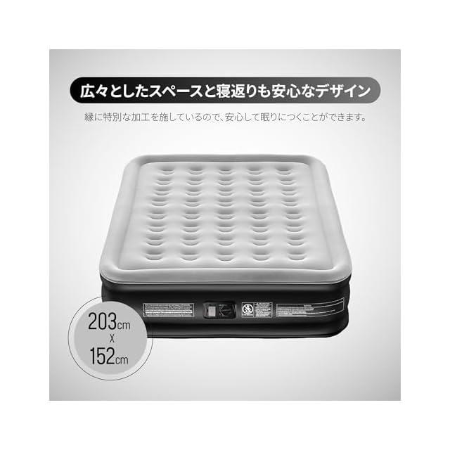 Airefina エアーベッド ダブルサイズ 電動ポンプ内蔵 キャンプ マット 耐久性 高耐久 来客用 フロック表面加工 長さ203×幅152×厚さ46cm 耐荷重340kg 空気ベッド 快適な寝心地 折り畳み 収納袋付き キャンプ 予備ベッド 家庭用
