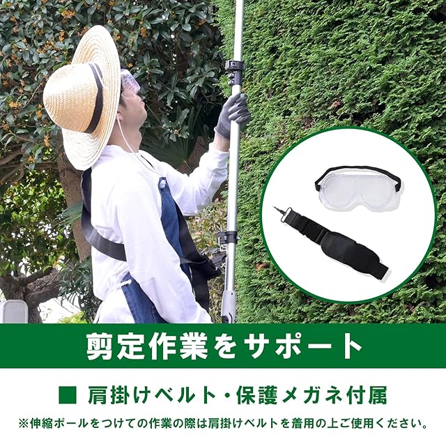 【特徴】ヘッドを切り替えるだけで4つの剪定作業ができる10.8V 充電式 ガーデンポールトリマー&ポールソー 4WAYセットです。伸縮式で剪定する木の高さに合わせて高さ調節が可能です。角度調整可能で、高さのある木でもお手入れは簡単です。枝キャッチャーで細い枝も簡単に切断が可能です。ポールを外して手持ちにすることで、生垣の剪定作業も簡単に行え、約30㎝の刈込幅でワイドに刈り込むことができます。ポールを外して手持ちに切り替えカット作業をすることで、ゴミの処理が簡単です。充電はUSB-Cケーブルです。(充電器なし)肩掛けバンドや保護メガネ付属で剪定作業をしっかりサポートします。
