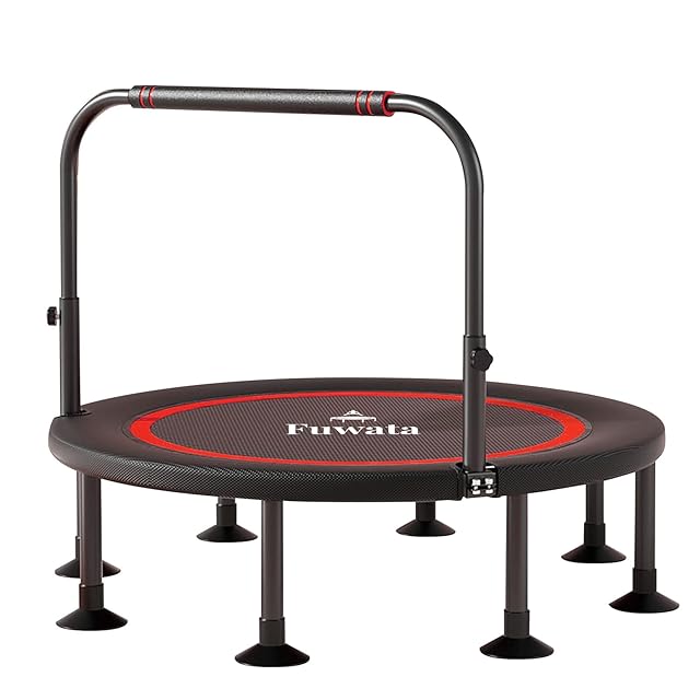 商品名:Fuwata トランポリン 手摺付き 8本脚 直径102cm 耐荷重200kg 大人用 子供用 室内用 静音 折りたたみ ダイエット 収納便利 組み立て簡単 耐久性高い 室内室外兼用 (8本脚, ブラック)