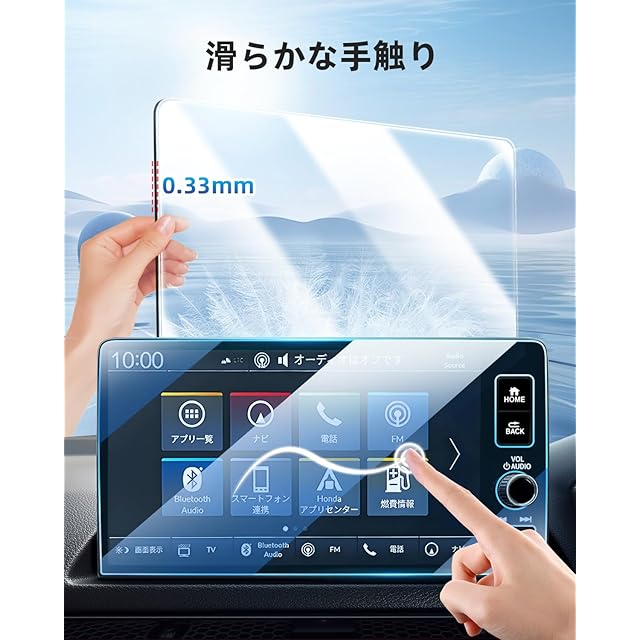 【9H高硬度ガラスフィルム】新型ホンダ シビックタイプR 保護フィルムには9H硬度素材を採用し、ガラスを強化することで外界からの衝撃(鍵や硬いものなど)を吸収し、映像へのダメージを最小限に抑えます。 貼った事で傷が付かない安心感で生まれました。