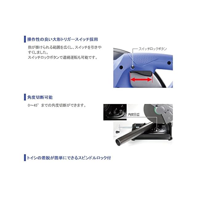 最大切断能力:[○パイプ]0°120mm、45°115mm・[L形鋼]0°130mm、45°100mm