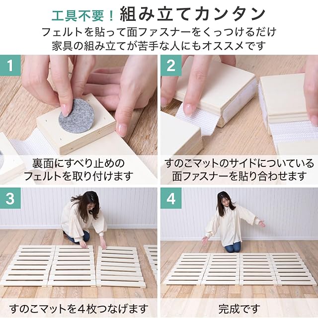 【通気性が良い】すのこなので、湿気などがたまりにくく通気性が良いです。寝汗や湿気がこもりがちな敷布団やマットレスの下に敷くだけで、カンタンに湿気対策ができます。