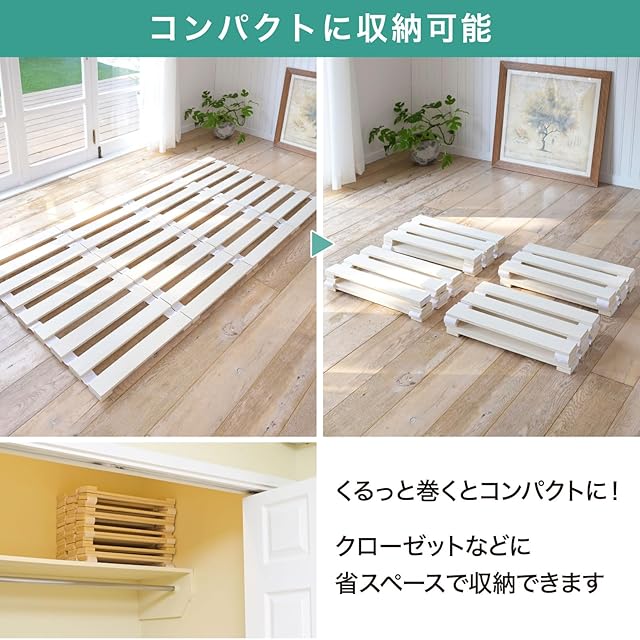 【コンパクトに収納】すのこマットは一つずつくるっと巻くとコンパクトにできるので、模様替えや引っ越し、お掃除のときなど省スペースでクローゼットや押入れに収納しておけます。
