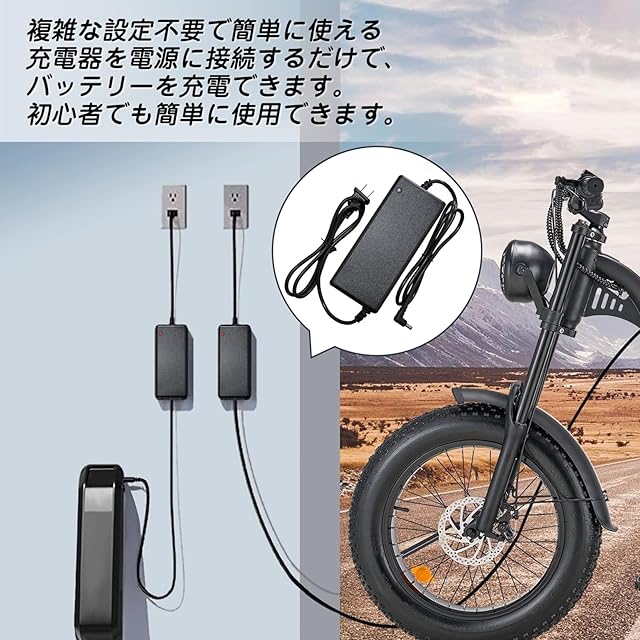 ※ご購入前に、お使いのバッテリーが48Vリチウムイオン電池であることをご確認ください。本製品の充電器仕様:出力:54.6V / 2A、対応バッテリー:48Vリチウムイオン電池用。異なる電圧仕様のバッテリーには絶対に使用しないでください
