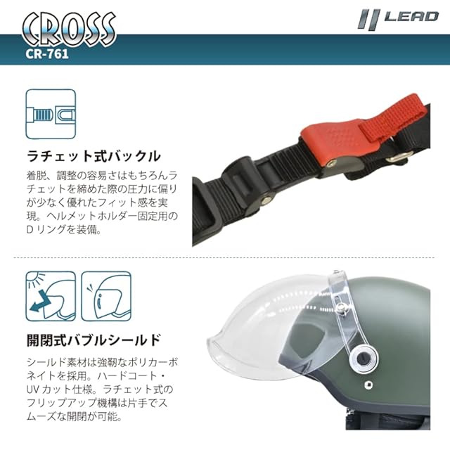 商品名:リード工業(LEAD) バイクヘルメット バブルシールド付きハーフ CR-761 マットグリーン LLサイズ (61-62cm未満)