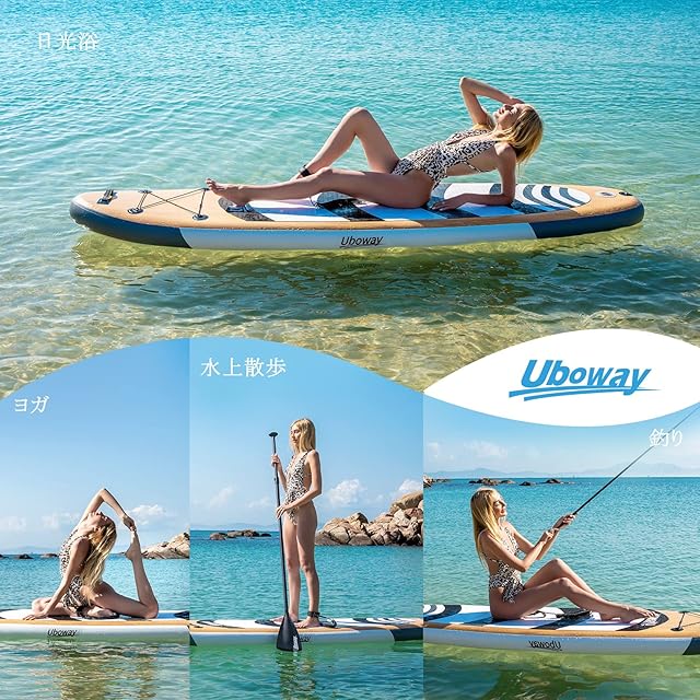 【 安定・多用途 】 手動ポンプは正確な圧力計と気密ホースが装備されて、急速に空気を入れることができます。省力で便利で、圧力計は頑丈で、すぐに空気が充満して、操作は簡単です。ボードは荷物固定用コードと波に流されないようにリーシュコードも付きました。SUPボードは岩のように頑丈になり、横揺れが少なく、浮力・扱いやすさともにバランスがよく、サーフィン、水上散歩、ヨガ、釣りなど多用途対応です。高品質で美しいラインデザインが水面に溶け込んでいるようで、気軽に海、川、湖、運河等の様々なシチュエーションで遊べます。